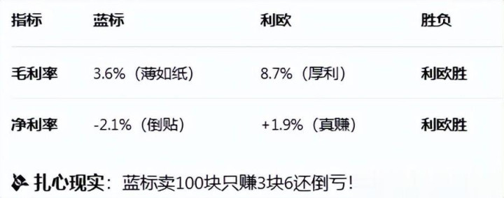 扎心现实:蓝标卖100块只赚3块6还倒亏!利欧闷声发财!利欧三连胜!