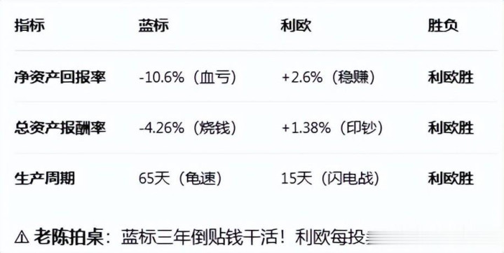 ⚠️ 老陈拍桌:蓝标三年倒贴钱干活!利欧每投100块净赚2块6,利欧完胜!