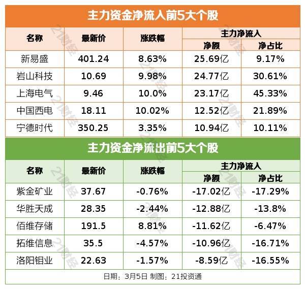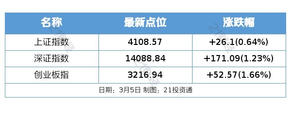 3月5日,市场全天冲高回落,创业板指此前一度涨超3%。截至收盘,沪指涨0.64%,深成指涨1.23%,创业板指涨1.66%。沪深两市成交额2.39万亿,较上一个交易日放量243亿。