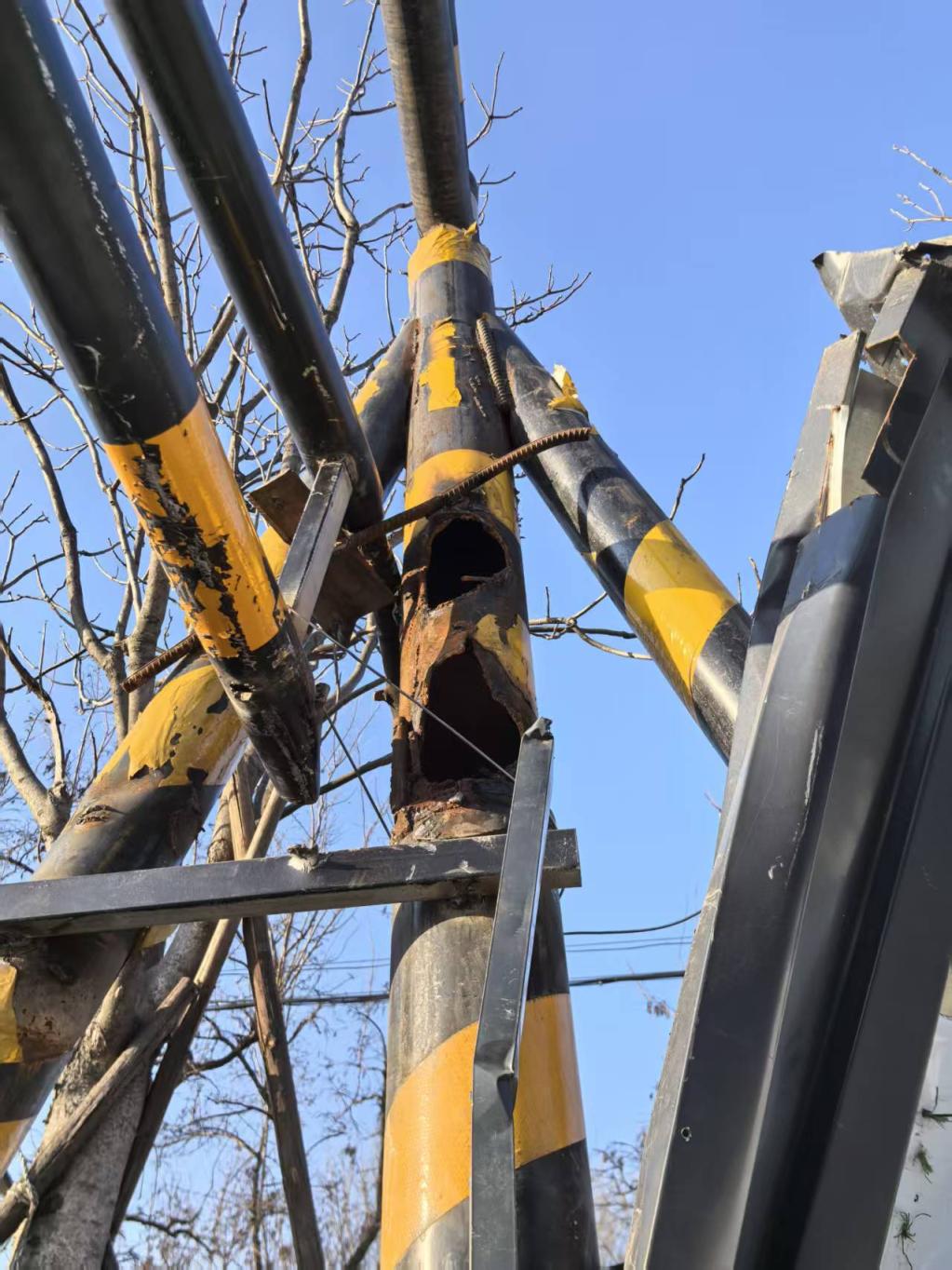 在永定河大桥南侧,记者见到一处新装的限高杆,被撞坏的限高杆就被弃置在原地。据观察,该点位西南、东北及西北3处弃置了3根已毁损的限高杆。“装上不久就被撞坏了。坏了再装,装了不久就又被撞坏了。”刘先生说。