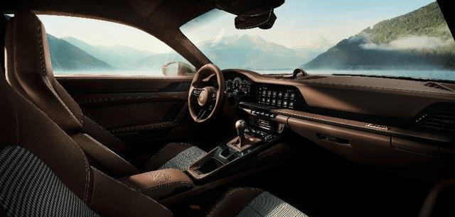 内饰方面,新车延续松露棕色皮革座椅,并配以纺织面料,后者的灵感源自费迪南德最钟爱的运动外套图案,融合了黑色、绿色、松露棕色、奶油色和波尔多红。此外,相同的面料还应用在手套箱与前备厢中。Sport Chrono 计时器受到 Chronograph 1 腕表的启发,这款表曾为 F.A. 保时捷打造,与之呼应的是采用开孔胡桃木的换挡杆。